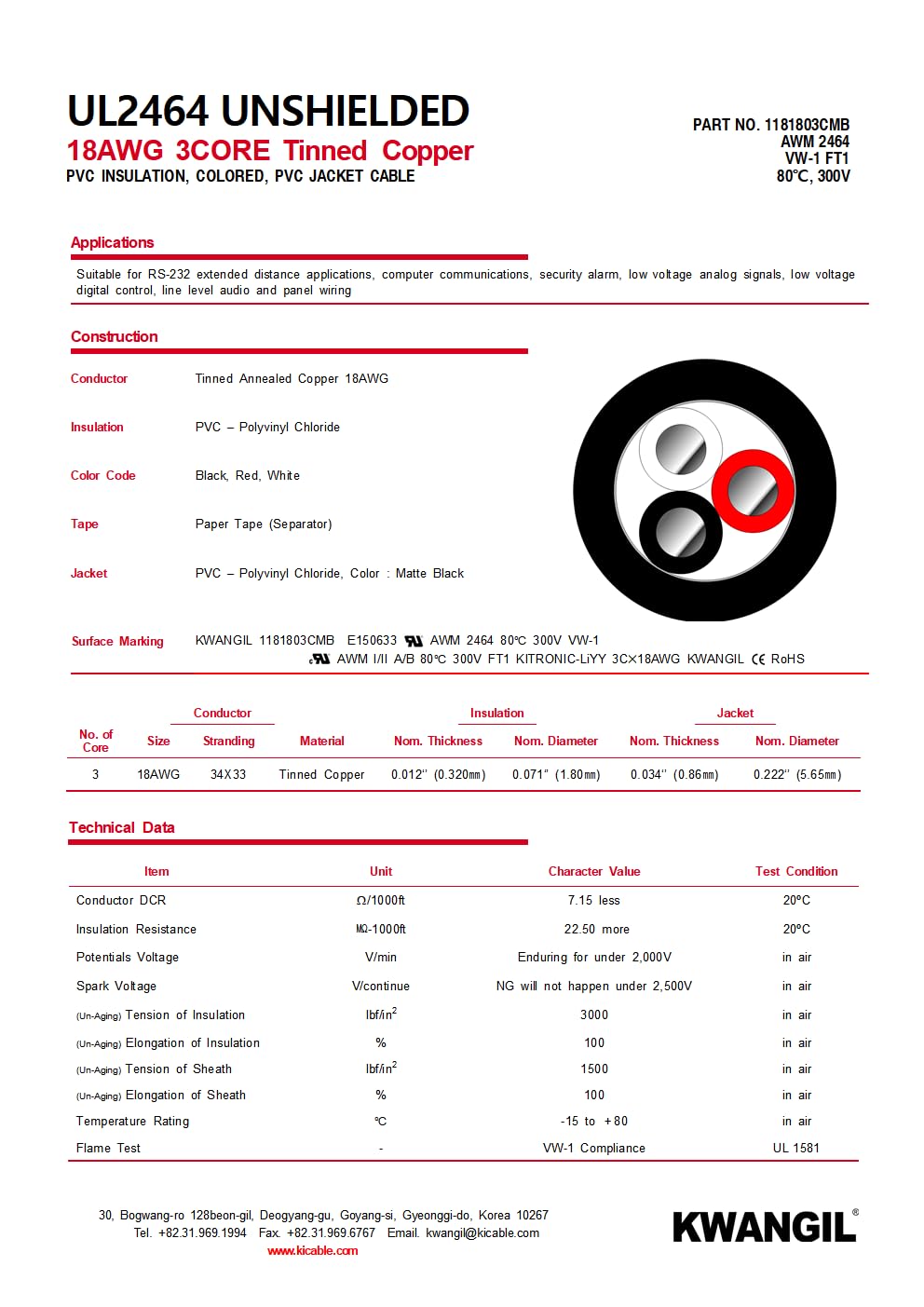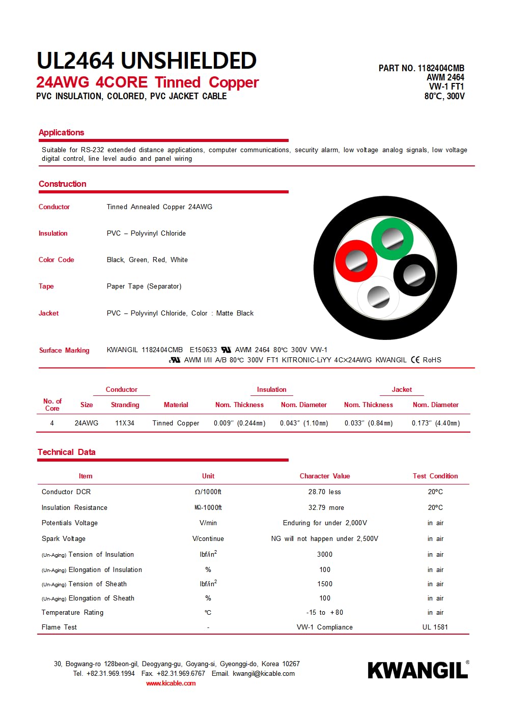 | Manufacturer | KWANGIL Electric Wire |